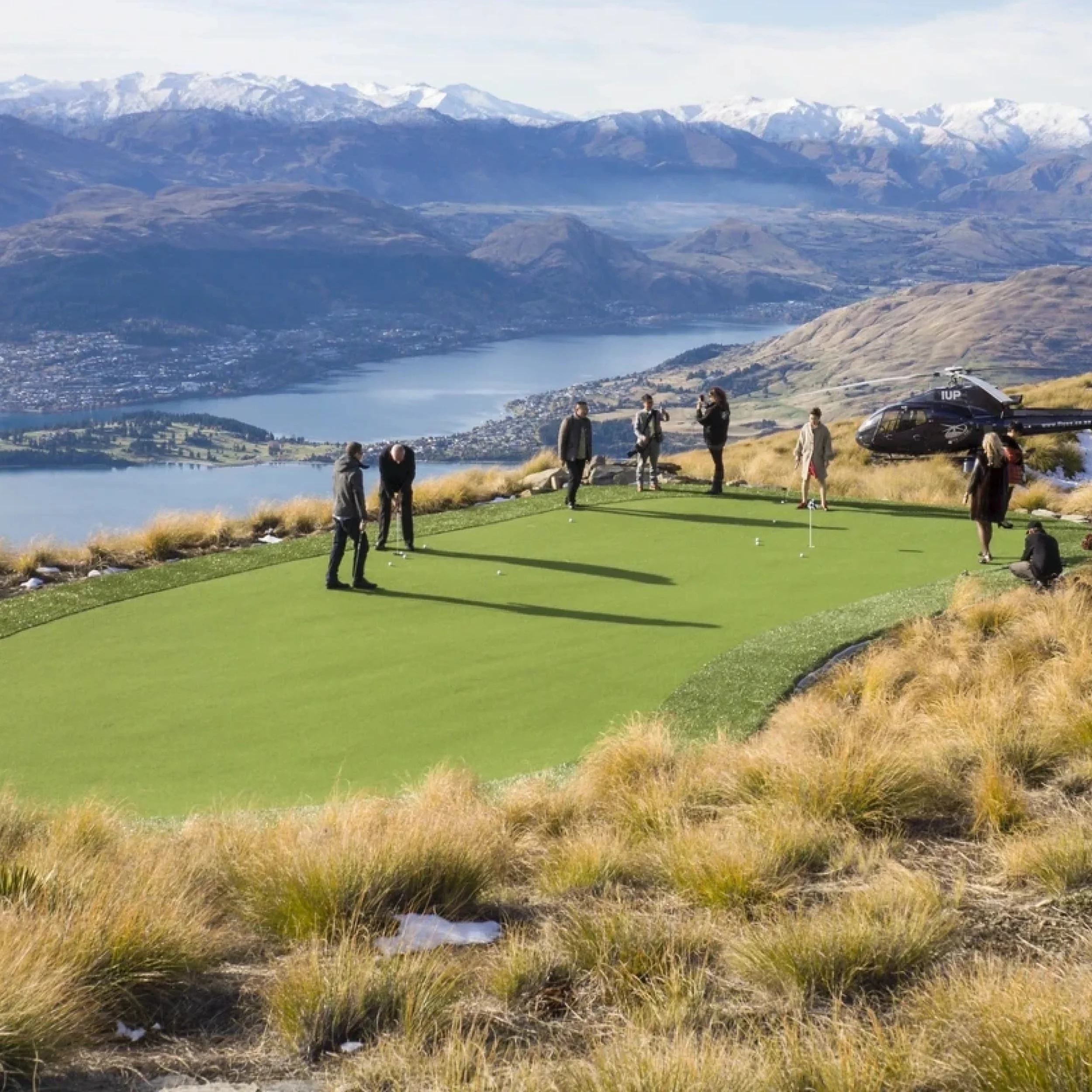 Lift off from Queenstown Airport and soar over shimmering lakes and rugged peaks before landing on your mountain-top green. Tee off from two of four unique tee boxes and see if you can score the ultimate hole-in-one—all against an unforgettable alpine backdrop.